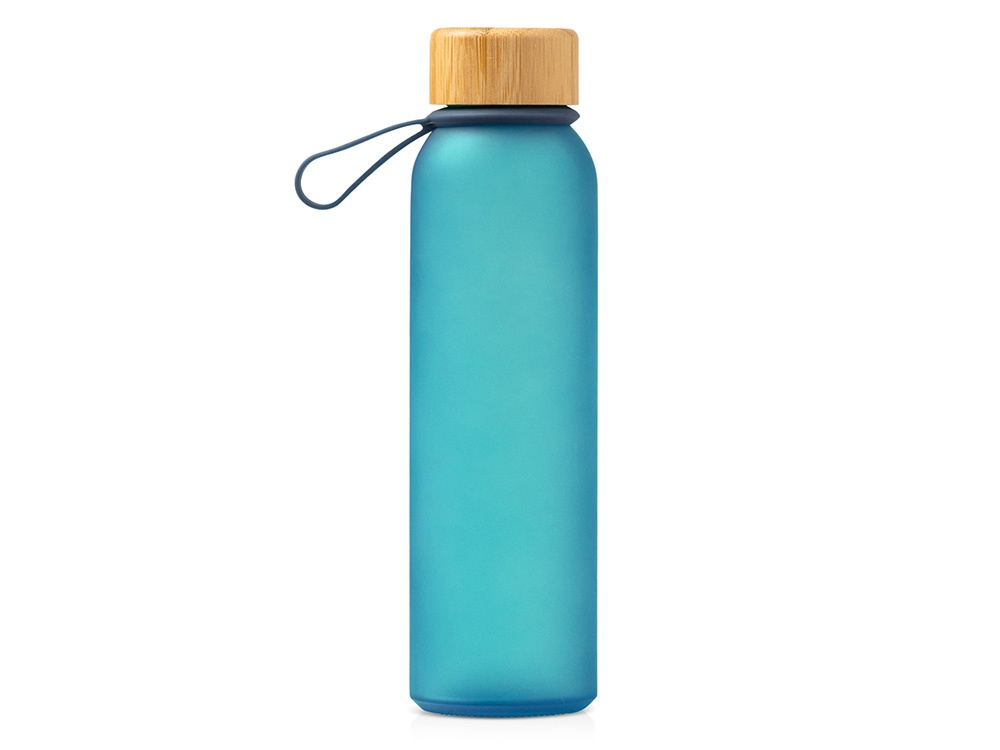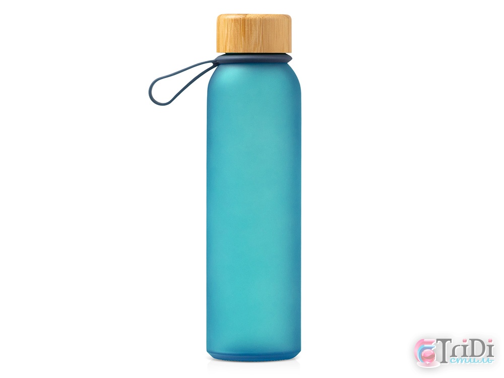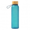 Полупрозрачная бутылка из переработанного стекла. Бамбуковая крышка с держателем. Объём: 500 мл. Поставляется в индивидуальной коробке.