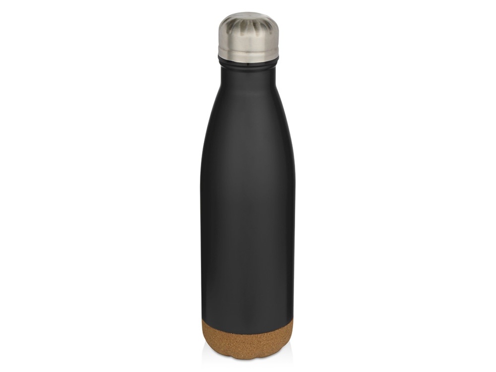 Бутылка для воды Cove из нержавеющей стали с двойными стенками и вакуумной изоляцией, объемом 500 мл, с пробковыми деталями - сплошной черный