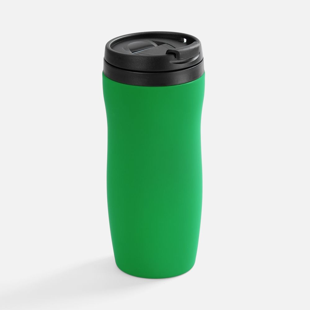 Емкость 350 мл.Двухслойная конструкция из нержавеющей стали снаружи и пищевого пластика внутри. Герметичная завинчивающаяся крышка с откидным клапаном для питья. Покрытие софт-тач. В отверстие в крышке можно вставить шнурок для удобного ношения стакана на руке. Шнурок в комплект не входит.Крышку можно мыть в посудомоечной машине, корпус рекомендуем мыть вручную.Изменение температуры напитка внутри закрытого стакана: При температуре окружающей среды +20 °Сначальная температура — 95 °Счерез 1 час — 70 °Счерез 2 часа — 50 °С