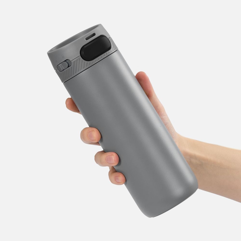 Термостакан X1 с цветной кнопкой, серый с черным