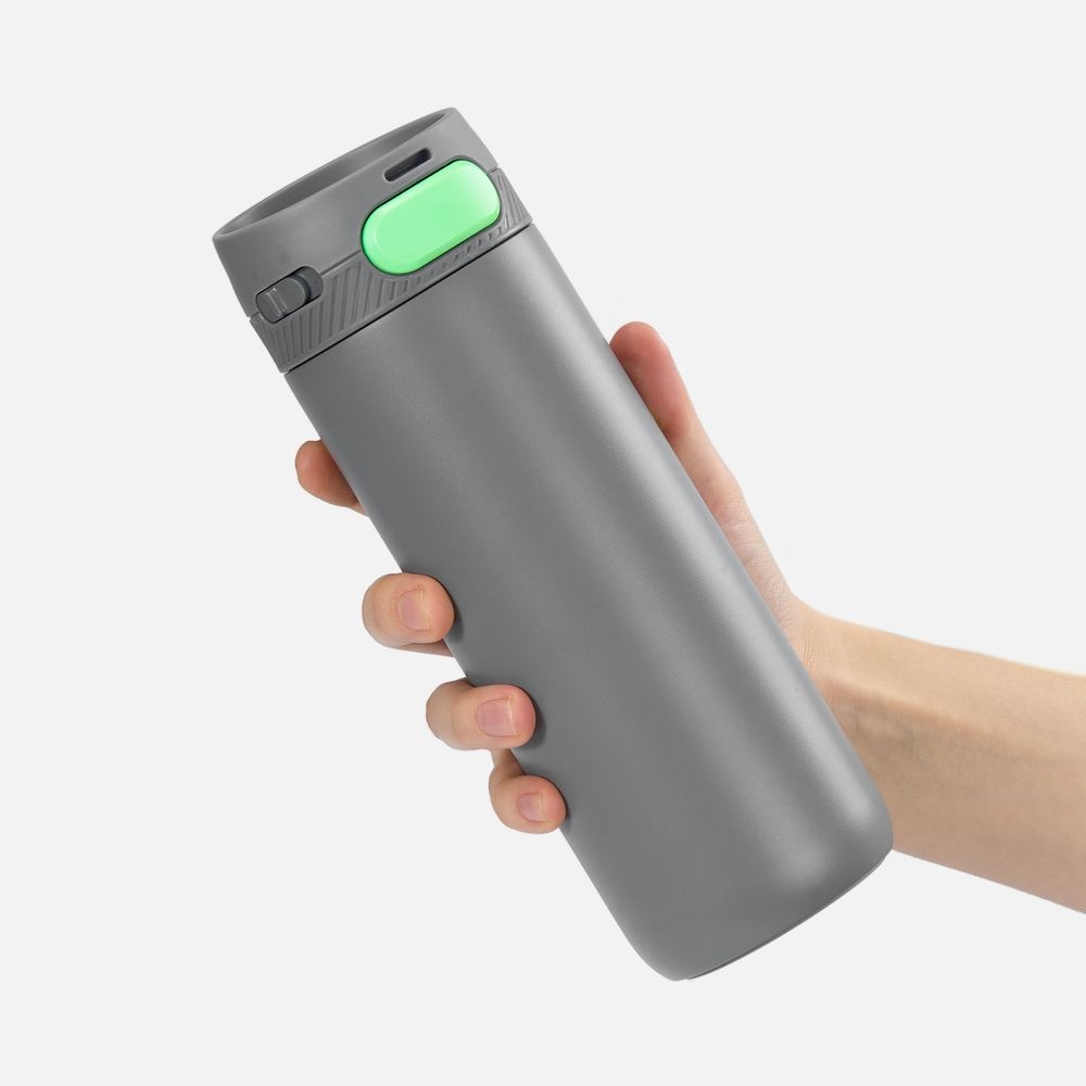 Термостакан X1 с цветной кнопкой, серый с зеленым