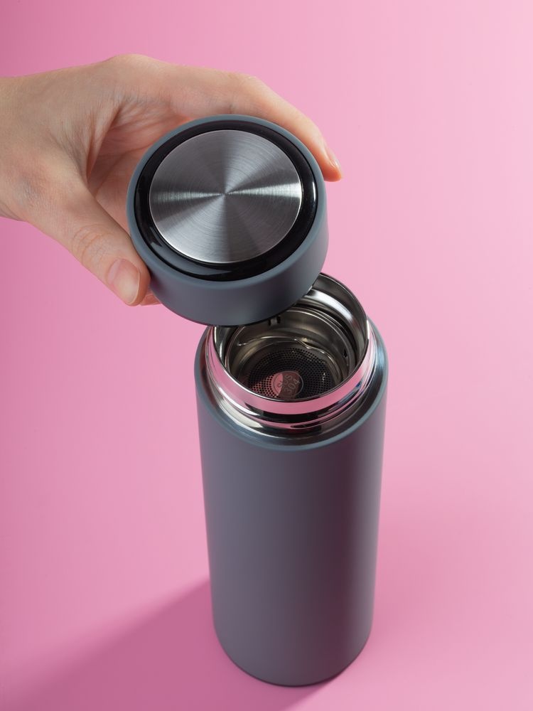 Компактный термос Percola пригодится и в городе, и на природе. Съемное ситечко поможет заварить чистую чашку чая или кофе, а цилиндрический корпус даст широкие возможности для маркетинговых сообщений.Емкость 500 мл.Стальная колба с двойными стенками и вакуумной изоляцией сохраняет тепло до 18 часовСъемное ситечко для завариванияПластиковые детали не содержат бисфенол АИзменение температуры напитка внутри закрытого термоса:При температуре окружающей среды +20 °Сначальная температура — 95 °Счерез 3 часа — 85 °Счерез 5 часов — 75 °Счерез 9 часов — 60 °Счерез 18 часов — 50 °СИз-за технологических особенностей процесса круговой гравировки нанесение встык не производится.Крышку и корпус рекомендуем мыть вручную.