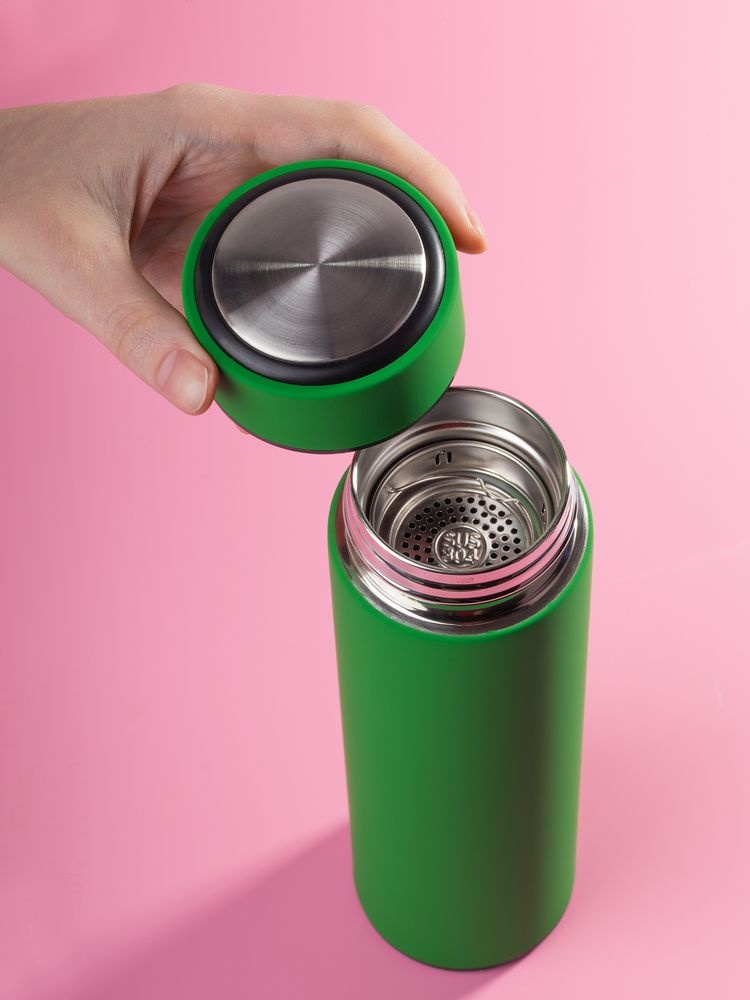Компактный термос Percola пригодится и в городе, и на природе. Съемное ситечко поможет заварить чистую чашку чая или кофе, а цилиндрический корпус даст широкие возможности для маркетинговых сообщений.Емкость 500 мл.Стальная колба с двойными стенками и вакуумной изоляцией сохраняет тепло до 18 часовСъемное ситечко для завариванияПластиковые детали не содержат бисфенол АИзменение температуры напитка внутри закрытого термоса:При температуре окружающей среды +20 °Сначальная температура — 95 °Счерез 3 часа — 85 °Счерез 5 часов — 75 °Счерез 9 часов — 60 °Счерез 18 часов — 50 °СИз-за технологических особенностей процесса круговой гравировки нанесение встык не производится.Крышку и корпус рекомендуем мыть вручную.