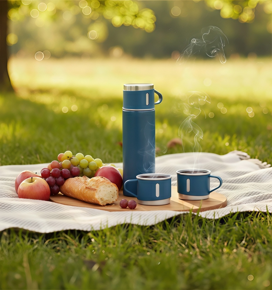 Хотите устроить легкий перекус на свежем воздухе, не забудьте про набор "Алтай". Отлично подойдет для небольшой компании из трех человек. Термос удобно держать за ручку. Корпус в защитном порошковом покрытии (powder), рекомендуем гравировку газовым лазером и объемную уф-печать, см. фото. Колба из нержавеющей пищевой 304 стали. Клапан с кнопкой для удобного розлива и эффективного сохранения температуры напитка.