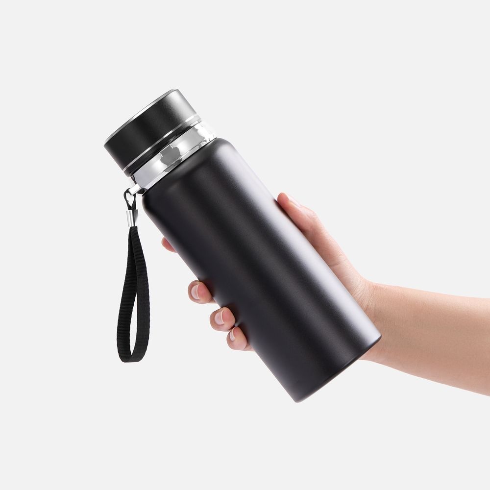 Умный термос Termino отображает температуру жидкости на ЖК-дисплее — точные данные собирает встроенный в крышку датчик.Стенки из нержавеющей стали и вакуумная изоляция корпуса сохраняют напитки горячими (60 °C) в течение 8 часов или прохладными (10 °C) в течение 12 часов.Съемное ситечко помогает удобно и аккуратно заварить в термосе чай, кофе или травяной сбор.Встроенная батарейка обеспечит работу дисплея до 1000 нажатий или одного года работы. Объем 800 млКорпус из нержавеющей стали внутри и снаружиСенсорный ЖК-дисплейРемешок для запястьяИнформация о температуре жидкостиРаботает от встроенной незаменяемой батарейки типа CR2032 (в комплекте)Поставляется в индивидуальной упаковке.