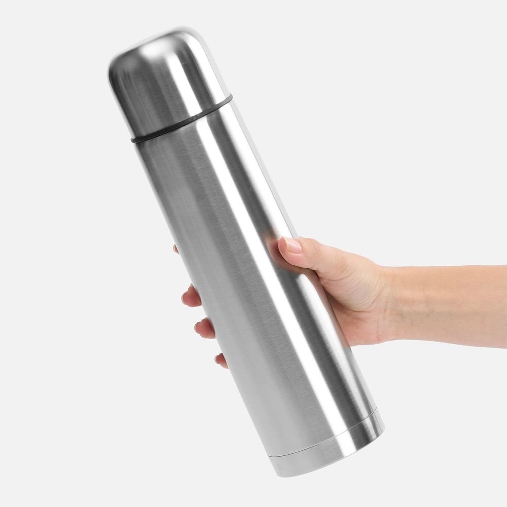 Емкость 1000 мл.Двухслойная вакуумная конструкция из нержавеющей стали внутри и снаружи с завинчивающейся пробкой с клапаном.Изменение температуры напитка внутри закрытого стакана:При температуре окружающей среды +20 °Сначальная температура — 95 °Счерез 3 часов — 70 °Счерез 6 часов — 60 °Счерез 12 часов — 55 °Счерез 24 часа — 45 °СИз-за технологических особенностей процесса круговой гравировки нанесение встык не производится.Крышку можно мыть в посудомоечной машине, корпус рекомендуем мыть вручную.