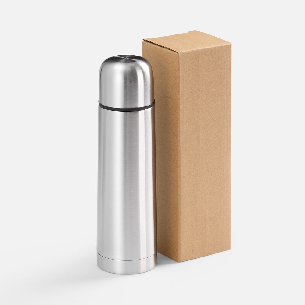 Емкость 500 мл.Двухслойная вакуумная конструкция из нержавеющей стали с завинчивающейся пробкой с клапаном.Изменение температуры напитка внутри закрытого стакана:При температуре окружающей среды +20 °Сначальная температура — 95 °Счерез 3 часов — 70 °Счерез 6 часов — 60 °Счерез 12 часов — 55 °Счерез 24 часа — 45 °СИз-за технологических особенностей процесса круговой гравировки нанесение встык не производится.Крышку можно мыть в посудомоечной машине, корпус рекомендуем мыть вручную.