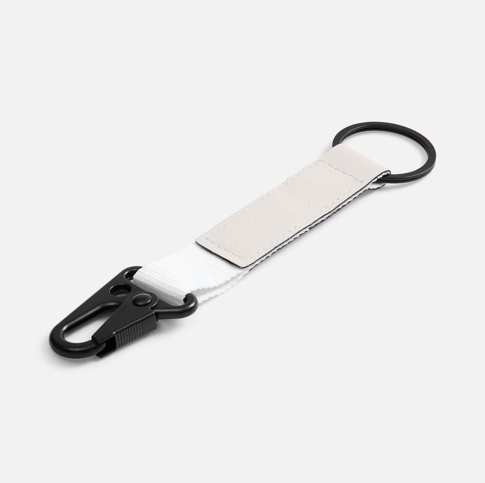Брелок из ткани и искусственной кожи с кольцом и карабином. Удобная конструкция позволит быстро пристегнуть или отстегнуть ключи и другие аксессуары, а декоративная накладка станет прекрасным местом для нанесения логотипа.Поставляется в индивидуальной упаковке.