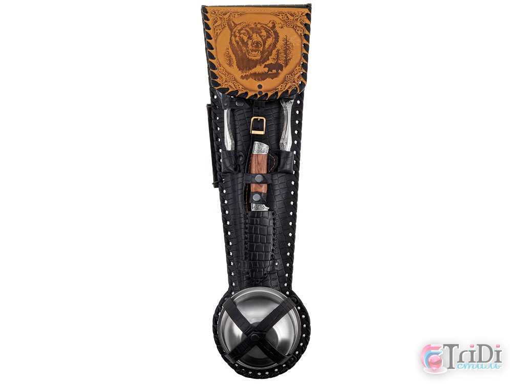 Набор для пикника в кожаном чехле ручной работы.
