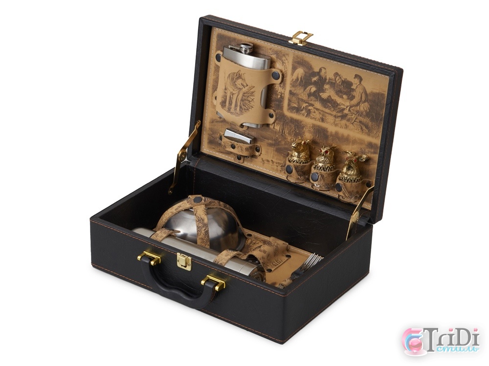Каждое изделие уникально, так как художественное выжигание может отличаться от представленного на фото, что придаёт набору особую индивидуальность. Все аксессуары надежно крепятся к кейсу кожаными ремешками на кнопке, обеспечивая удобство транспортировки и сохранность содержимого.