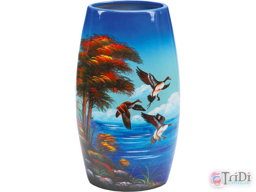 Отличная ваза поможет внести яркое пятно в интерьер любого помещения. Ваза Утиная охота с изображением диких уток выполнена из качественной керамики и раскрашена сочными цветами. Ваза станет превосходным подарком для заядлых охотников.