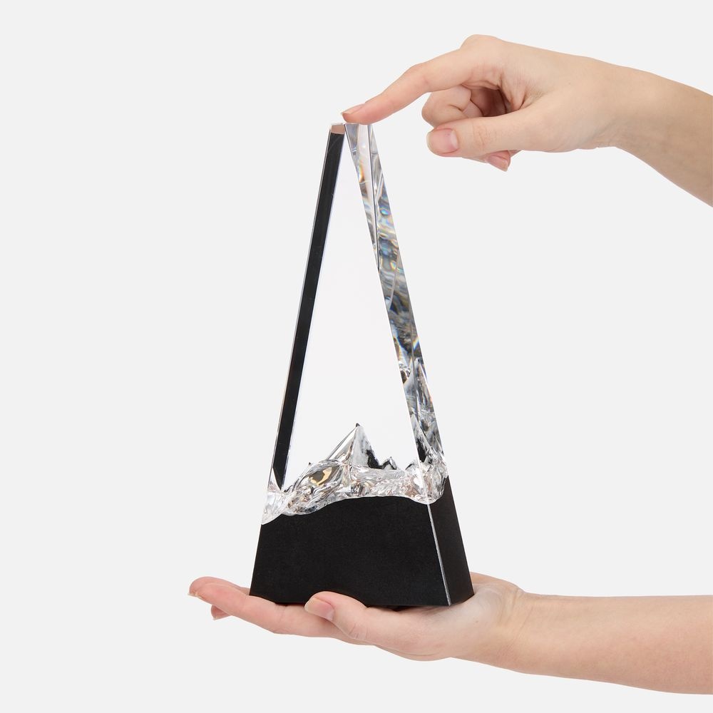 Стела Upward — это уникальное сочетание современного дизайна, высококачественных материалов и особых технологий. Ее заостренная форма напоминает о пройденных этапах — от основания к вершине. Особенно придется по вкусу работникам горной промышленности или строительной сферы, финансового сектора или страховых компаний. Воплощая стремление к самым заветным вершинам, награда Upward с легкостью вдохновит на новые победы. Нижняя часть стелы выполнена при помощи каменного литья из смеси специальной смолы с кварцевым черным и белым песком, тщательно отшлифованной после спекания при низкой температуре. Такой технологический прием создает завораживающую картинку внутри самой стелы, напоминающую горный хребет: яркий символ как преодоления, так и умиротворения.Upward. У успеха одно направление — вверх.