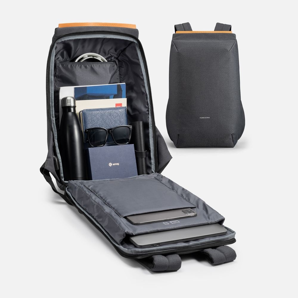 Рюкзак Orvion — универсальное решение для работы, учебы, путешествий и повседневных задач. Благодаря полному раскрытию на 180° обеспечивается отличный обзор содержимого, удобная укладка предметов и быстрая проверка отделений. Дополнительно предусмотрен внешний USB?порт для подзарядки смартфонов, планшетов и иных устройств в движении.Выдерживает нагрузку до 54 кгВес 630 гОбъем 16 лБольшое основное отделение на молнииВ основном отделении защитный карман для ноутбука с диагональю до 15,6" и карман для планшета с диагональю до 11"Внутри 3 кармана: один на молнии и два открытыхОткрывается на 180°Порт USB-C для зарядкиПотайная молния для защиты вещейУдобная ручка с возможностью фиксации на телескопической ручке чемоданаТкань с водоотталкивающим покрытиемМягкая спинка