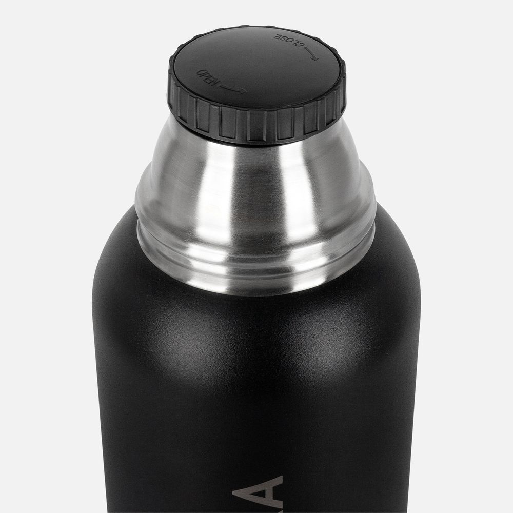 Классический термос Relaxika с высокими показателями удержания температуры напитка прекрасно подойдет для походов, путешествий, спорта и ежедневного использования. Набор стикеров в комплекте поможет добавить индивидуальности и поднять настроение.Емкость 1200 мл.Конструкция с двойными стенками и вакуумной изоляцией сохраняет содержимое холодным до 54 часов, горячим — до 48 часовНе содержит бисфенол АДвойная крышка с чашкойУзкое горлышко сохраняет температуру более длительное времяЗакручивающаяся глухая пробка без кнопки с силиконовым кольцом защитит от протеканияМыть только вручнуюВ комплекте стикерпак «Зимний спорт»Поставляется в фирменной упаковке.
